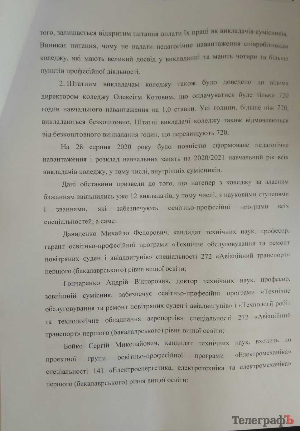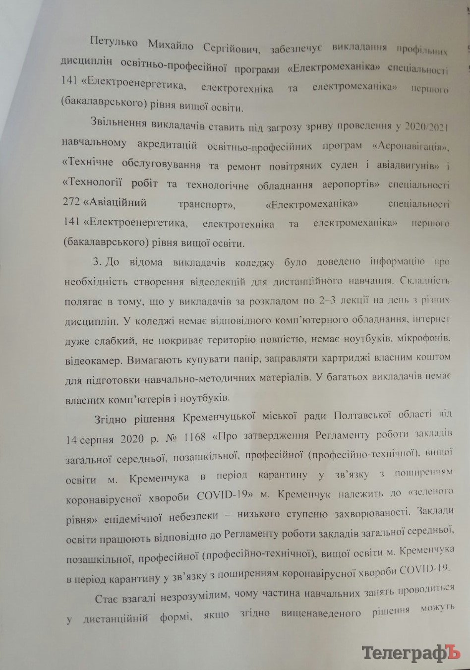 Отримавши вищезгаданий лист, кореспондент «Телеграфа» звернувся до директора Кременчуцького льотного коледжу Олексія Котова, аби він пояснив ситуацію, що склалася у закладі.