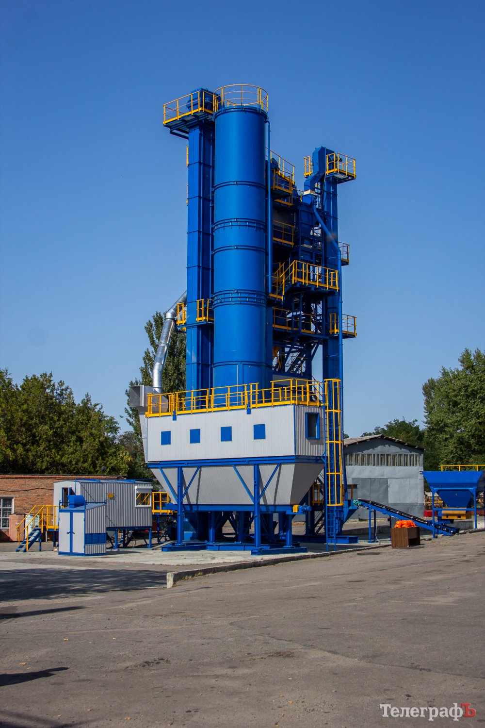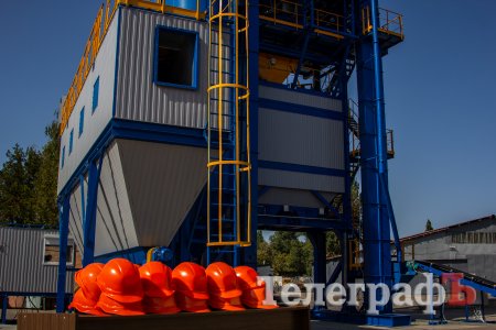 Це – нова надпотужна розробка «Кредмашу»: установка КДМ205. Зараз її випробовують – і кременчужани можуть її побачити з боку «Міського саду». Її потужність – 200 тонн асфальтобетону за годину. Раніше «Кредмаш» робив установки потужністю 160 тонн, але у зв’язку з будівництвом доріг в Україні шляховики захотіли більш потужний екземпляр – і завод зробив.