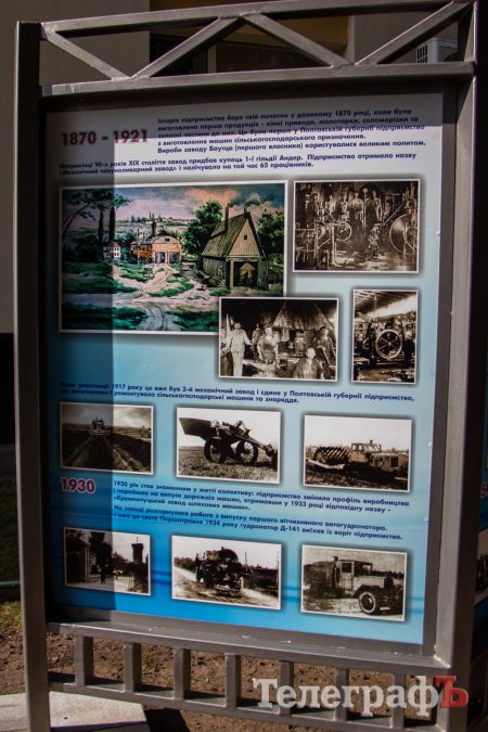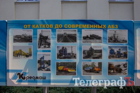 ПрАТ «Кременчуцький завод дорожніх машин» святкує своє 150-річчя. Усе починалося з випуску молотарок та кінних приводів – а зараз тут виробляють установки з виробництва асфальтобетону (фактично така установка - це цілий завод).