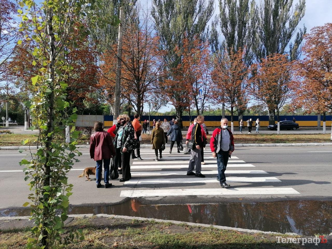 Мітингувальники ходять по пішохідному переході на Київській біля КТУ.