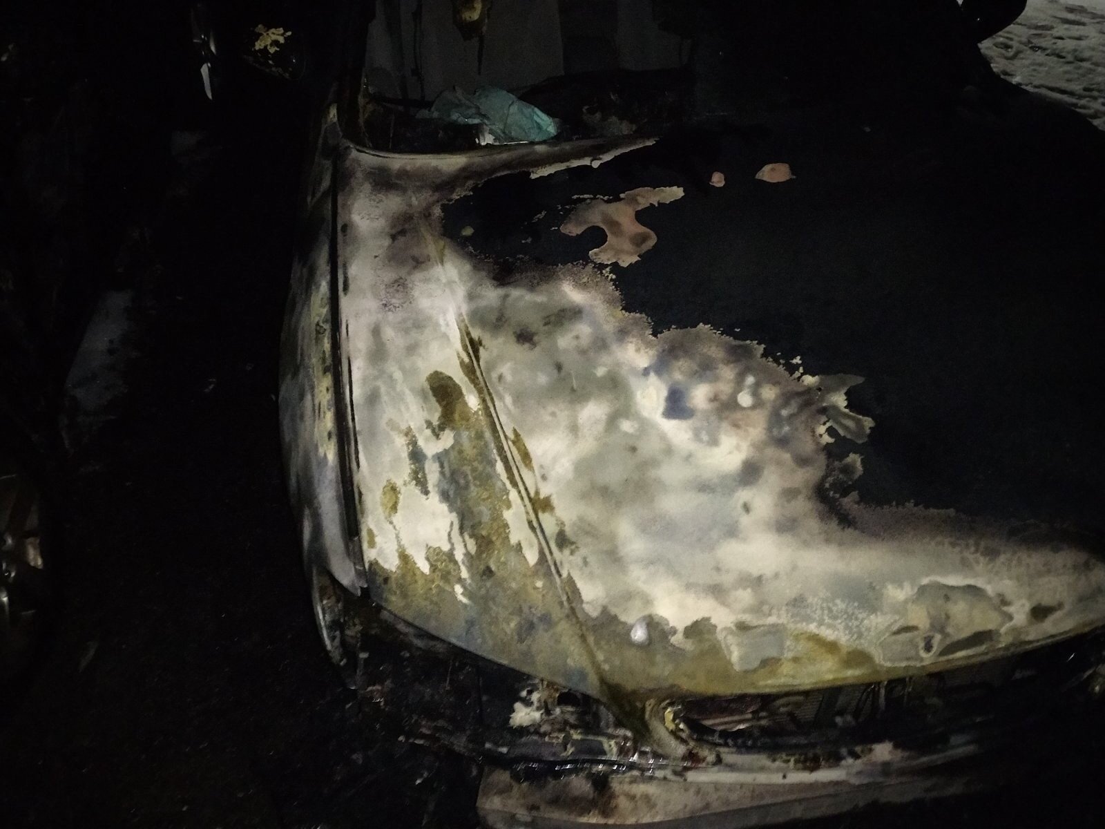 В автомобілі Nissan Maxima вогонь знищив передню частину. У Mitsubishi Lancer пошкоджено лакофарбове покриття переднього лівого крила, зовнішнє лакофарбове покриття кришки відсіку двигуна на площі 0,4 метра квадратних.