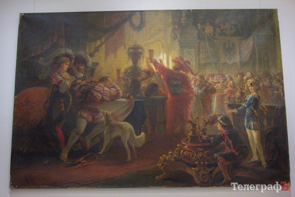 «Пир Валтасара», XIX век. Эту работу вывезли из Германии после второй мировой войны. Она принадлежала генералу, временно жившему в здании музея, уезжая, он её бросил – слишком громоздкая.
