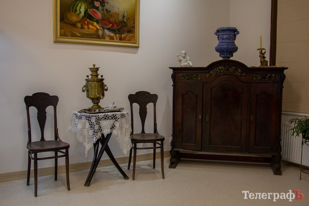 А вот это очень забавная история с незавершенным финалом, почти как в «Золотом теленке». Эти два антикварных кресла притащил в музей вице-мэр Кравченко. Он утверждает, что кресла из мебельного гарнитура, стоявшего в доме Володарского (дореволюционный домовладелец, в его доме теперь находится краеведческий музей). Вице-мэр купил их на аукционе. И разрешил устроить здесь фотозону. «Телеграф» спросил, подарил ли вице-мэр Кравченко кресла Володарского музею? Сотрудники музея вежливо промолчали. Но мы надеемся, что подарит. Ну не может же он сразу после выборов оттащить их к себе домой?
