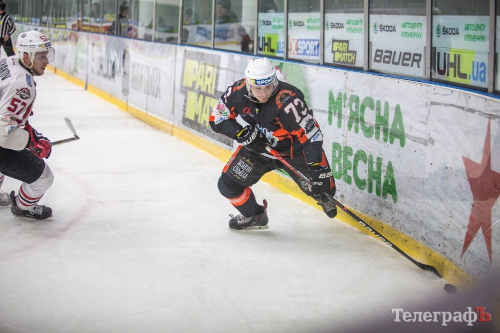 Вже з перших хвилин донеччани повели у рахунку, Буценко вдало зіграв на добиванні після кидка Мільохіна. «Кременчук» за кілька хвилин зрівняв рахунок – Серанов прострелив у дальній кут воріт – 1:1. Друга двадцятихвилинка пройшла за сценарієм першого періоду: першими рахунок відкрили гості й точний удар Дубініна в дев’ятку відновив паритет у матчі – 2:2. Звершення другого періоду та третій – нагадували поле бою з вилученнями та сутичками хокеїстів. Ви тільки уявить з якою силою та швидкістю летить шайба, якщо такий потужний удар наприкінці третього періоду залишив одного з арбітрів без ковзана, пошкодив його.