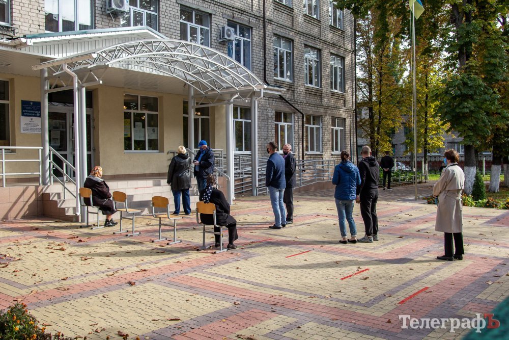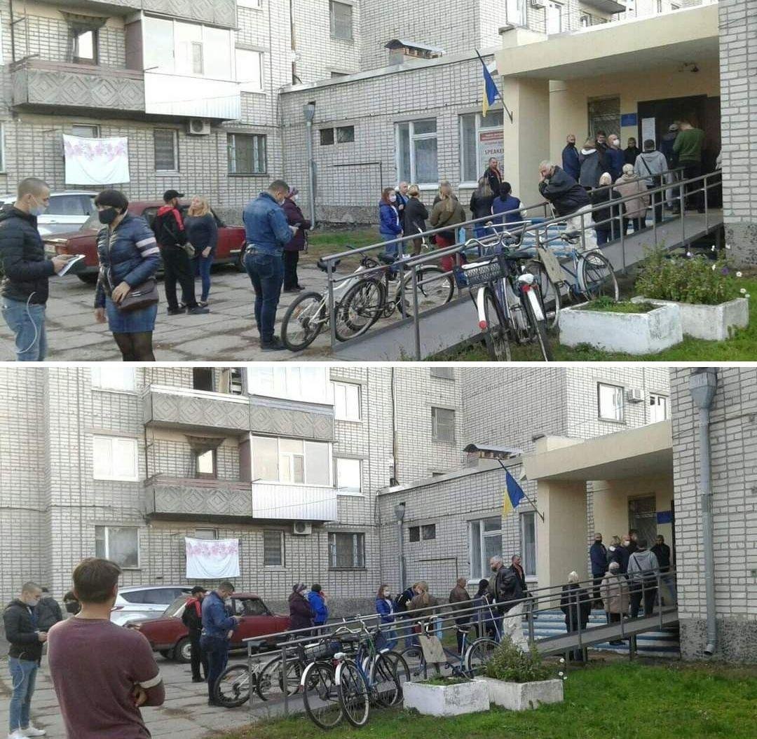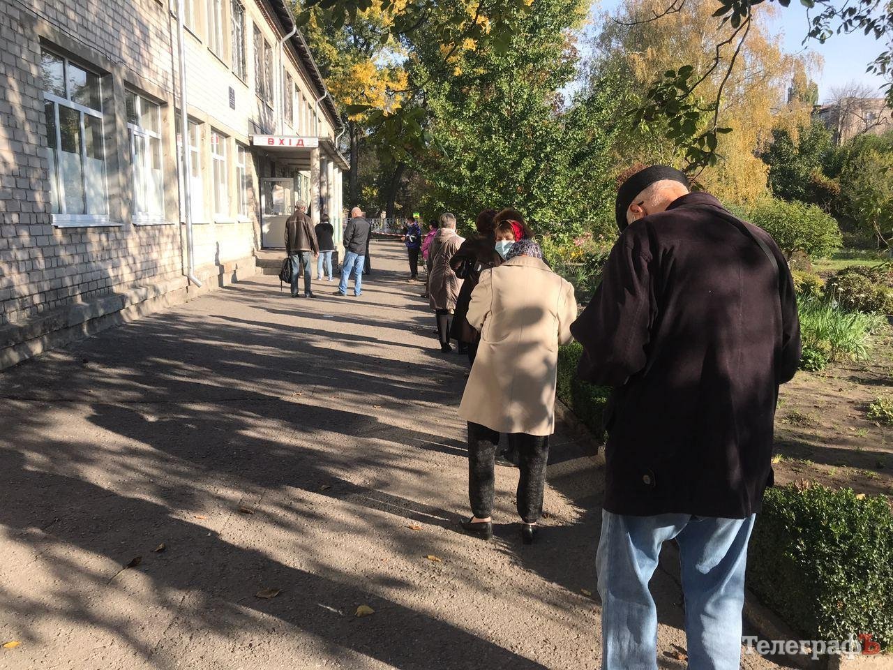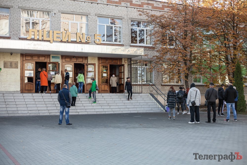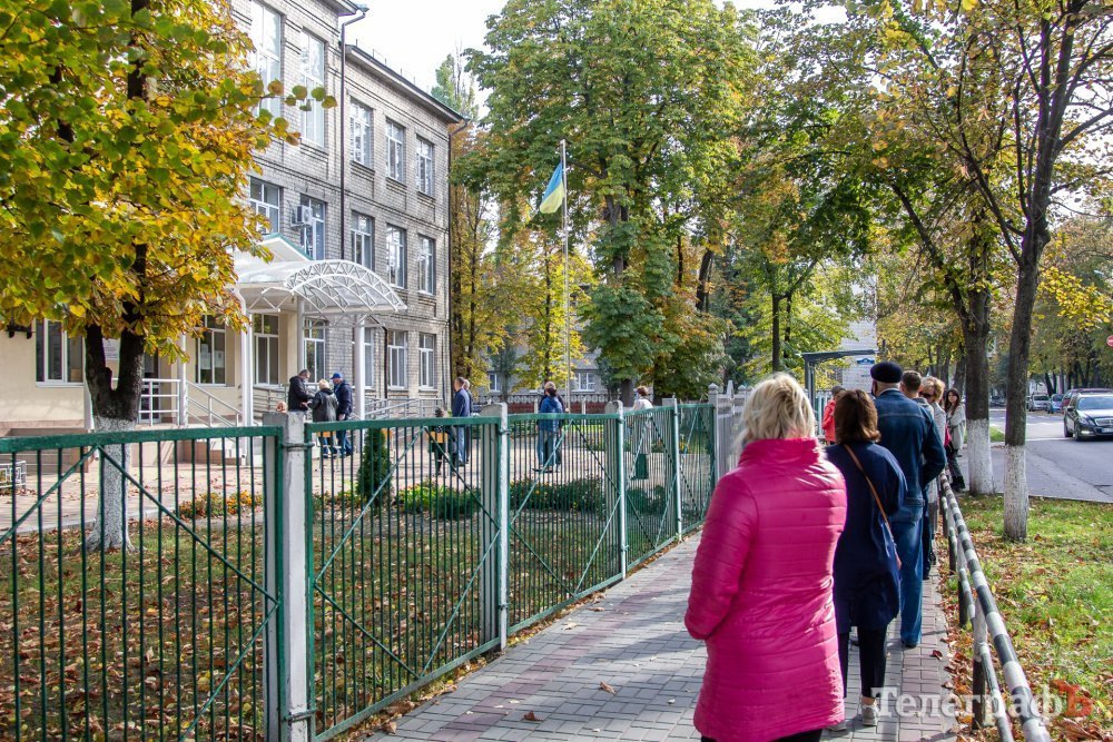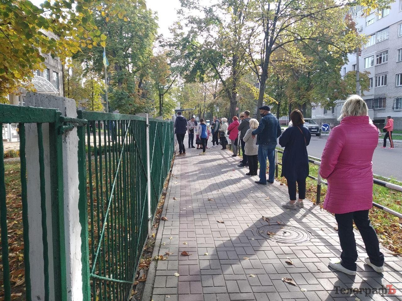 9.09 Кременчужани інформують про черги на виборчих дільницях. На фото черга до виборчої дільниці № 531078 за адресою просп.Свободи, 128.