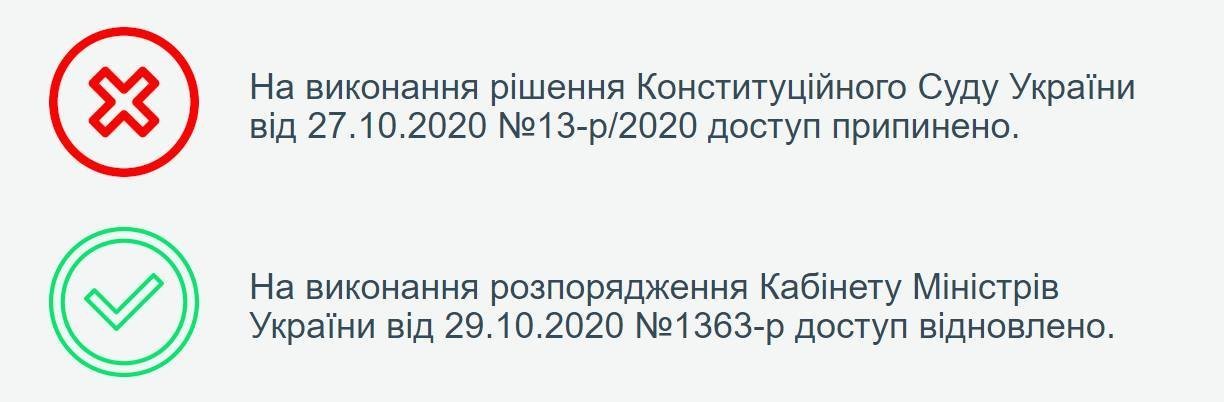 Доступ до реєстру відновлено на виконання Постанови КМУ від 29.10.2020 р. №1363-р. Так, учора Кабмін зібрався на термінове засідання після засідання ради РНБО, де мова йшла про скандальне рішення Конституційного Суду.