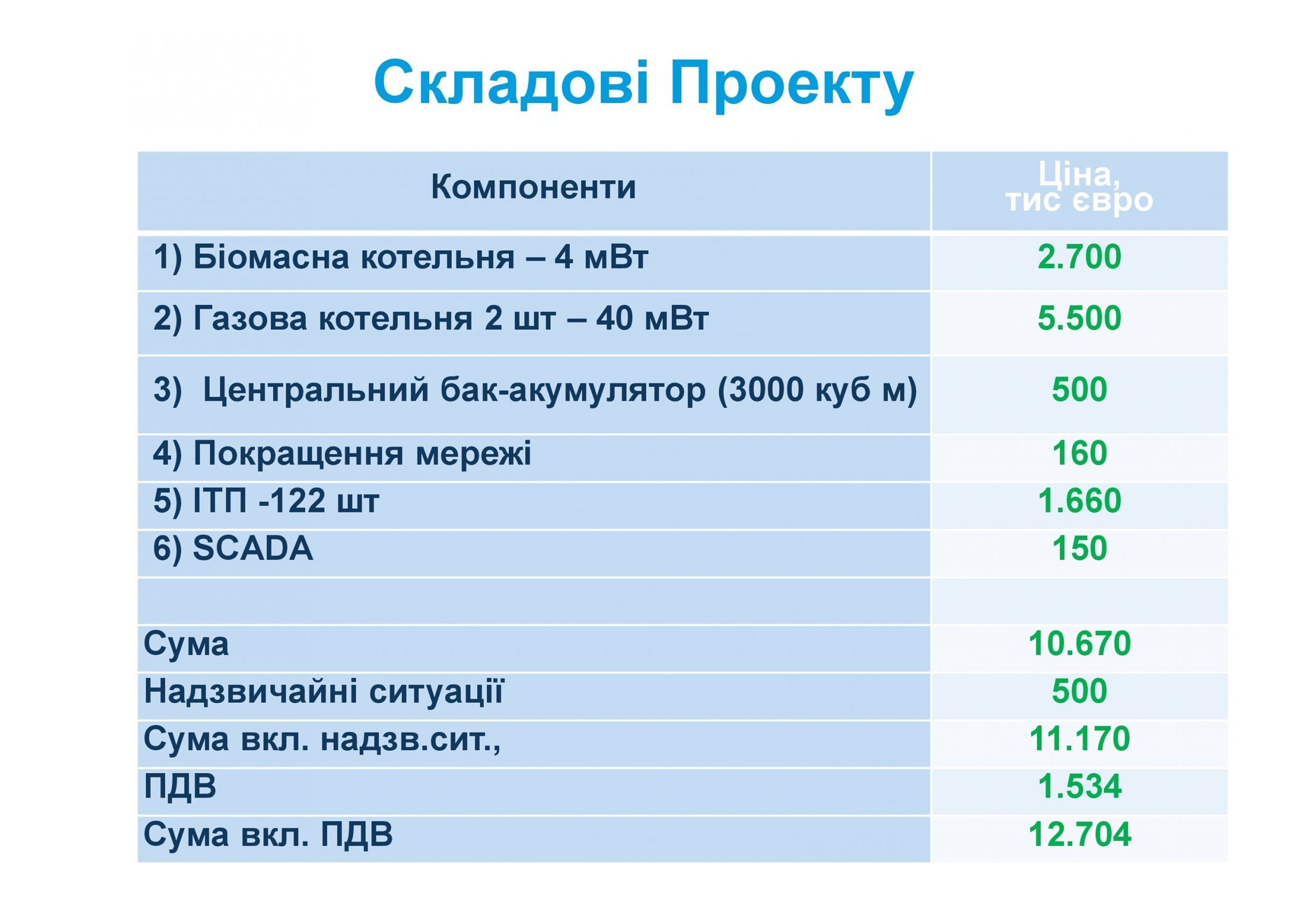 Як повідомлялося раніше, загальний інвестиційний бюджет проєкту складає 12,7 млн євро, із них: кредит НЕФКО — 6 млн євро; власний внесок міста — 2,25 млн євро; інвестиційний грант — 4,45 млн євро.