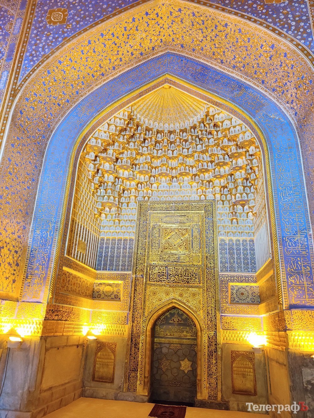 Внутреннее убранство мавзолея Амира Тимура (Тамерлана) просто с ног сшибает своей роскошью — золото, резьба, снова золото. Статус обязывает — здесь захоронен величайший завоеватель древности и его потомки