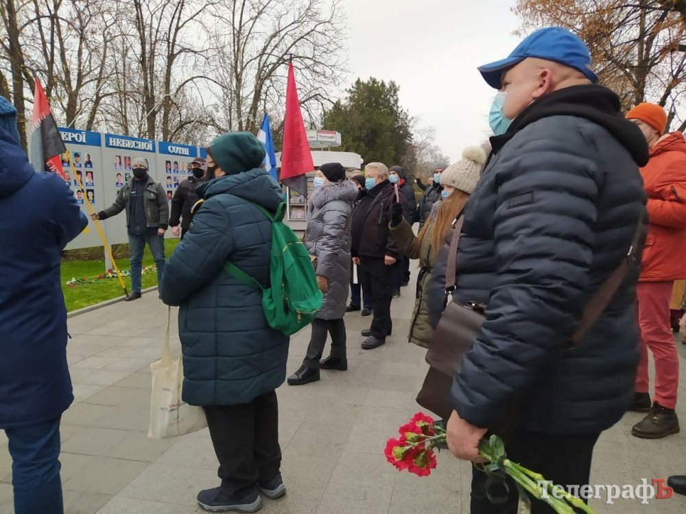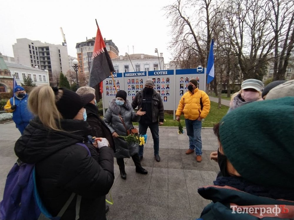 Люди вшанували пам’ять героїв Небесної Сотні, поставили свічки, поклали квіти, згадали події Революції Гідності. Представників влади на цьому мітингу не було – лише ексдепутат міськради, активістка Майдану і волонтерка Анна Павленко. Влада покладала квіти днем раніше – 20 листопада. Як і 7 років тому, активісти та влада не єднаються.