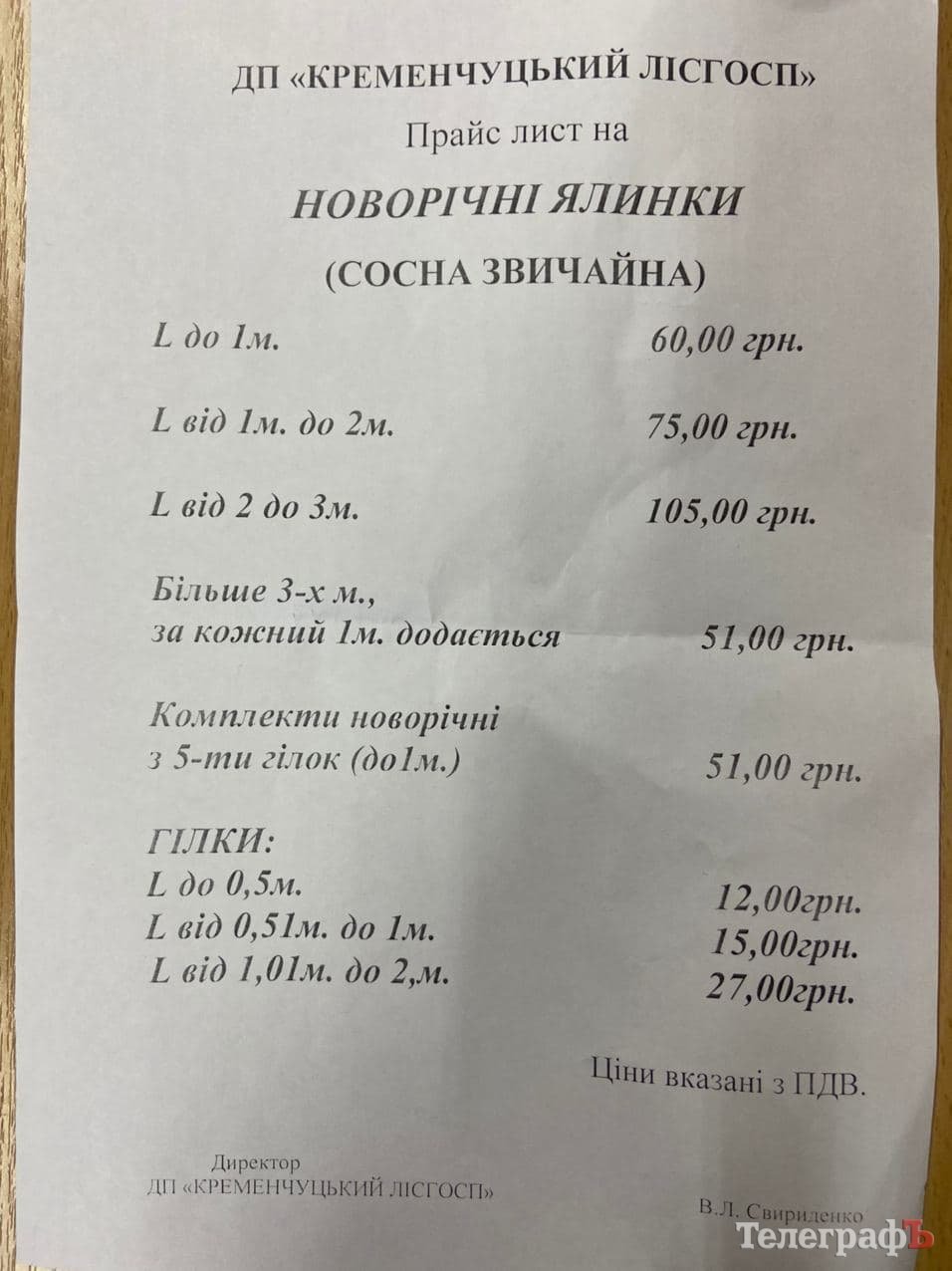 Також Т навідався й до Кременчуцького лісгоспу, тут продаж пухнастих зелених красунь розпочнеться з п’ятниці, 18 грудня. Кременчужани зможуть придбати як сосни, так і гілки, аби прикрасити свої оселі. Щоб ви були обізнані у цінах на новорічну хвою, публікуємо для вас прайс лісгоспу.