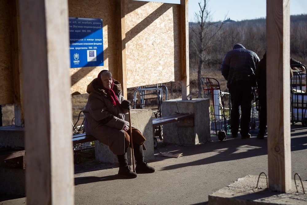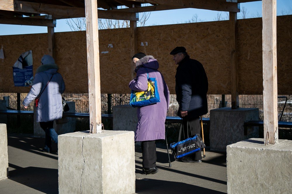 Валентині та ще кільком таким самим «застряглим» на КПВВ місцевим жителям запропонували пожити в недобудованому торговому павільйоні. Всередині стояла піч-буржуйка, яка не дала їм замерзнути ночами, поки вони перебували на КПВВ. Їжею допомагали волонтери та місцеві жителі.