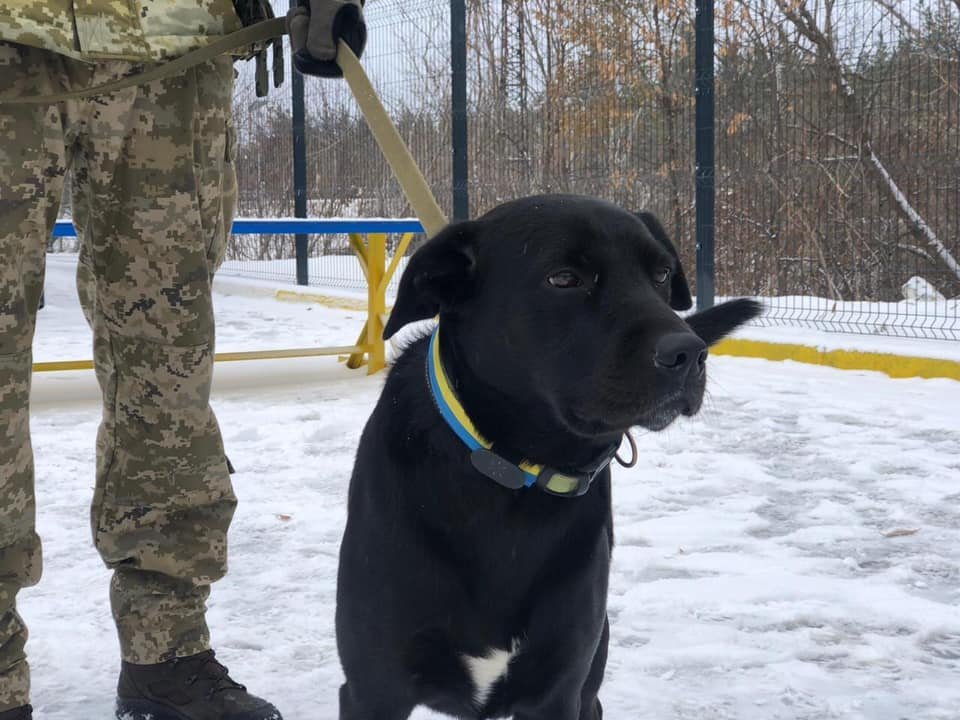 У зимовій «fashion-амуніції» – фокстер’єр – прикордонний експерт з виявлення вибухових речовин Сімка. Сімка служить в КПВВ «Золоте» Луганського прикордонного загону.