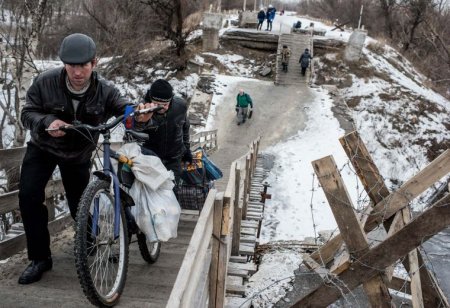 Міст через річку Сіверський Донець був зруйнований внаслідок обстрілів у 2015 році (на фото нижче).