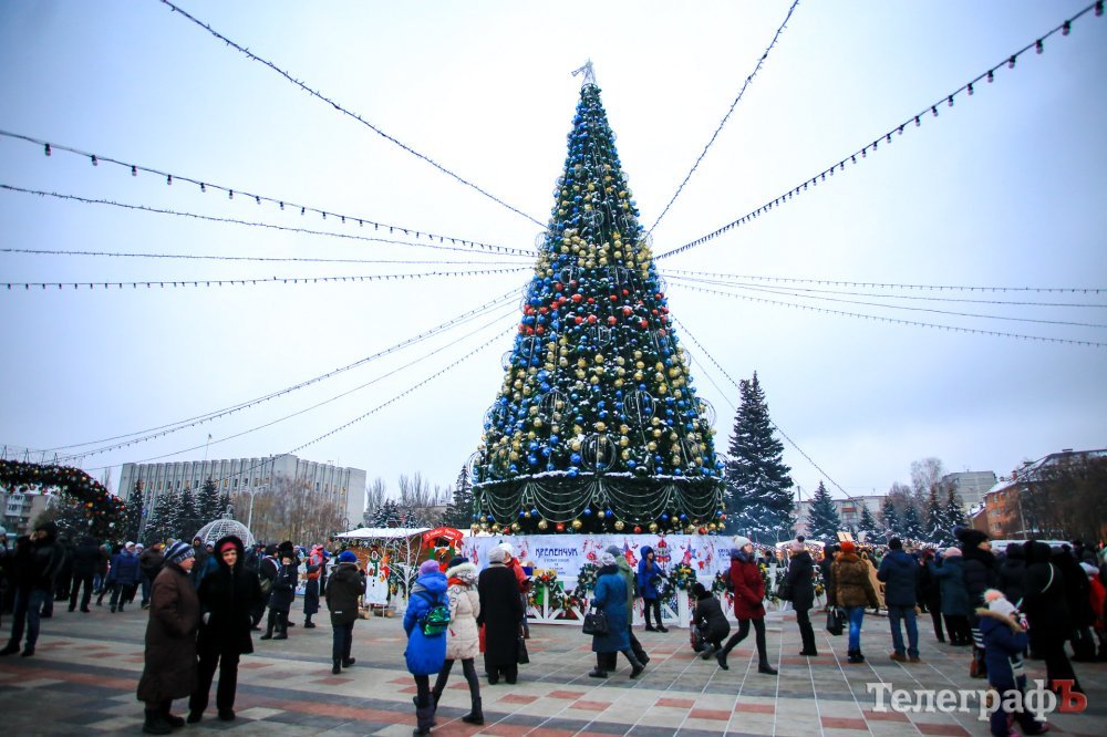 2017 рік кременчужани зустрічали новий рік на площі Перемоги, до цього ялинка розміщувалась на площі Незалежності. Ялинка була у жовто-блакитних кольорах