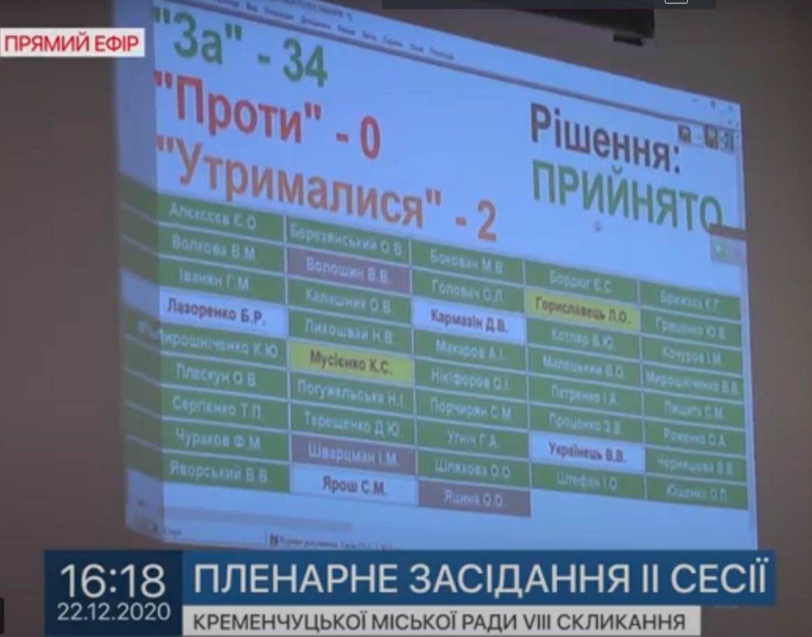 22 грудня депутати Кременчуцької міськради ухвалили рішення «Про бюджет Кременчуцької міської територіальної громади на 2021 рік». З технічних причин переголосовували двічі — виявилося, що Мінфін змінив коди бюджетної класифікації.