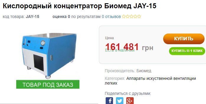 Як уже сказано, медзаклади купили кисневих концентраторів на суму майже 3 млн грн. Ціна на товар залежить від потужності приладу (є концентратори на 5, 8, 10 та 15 л), його марки, комплектації, виробника.
