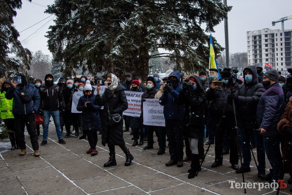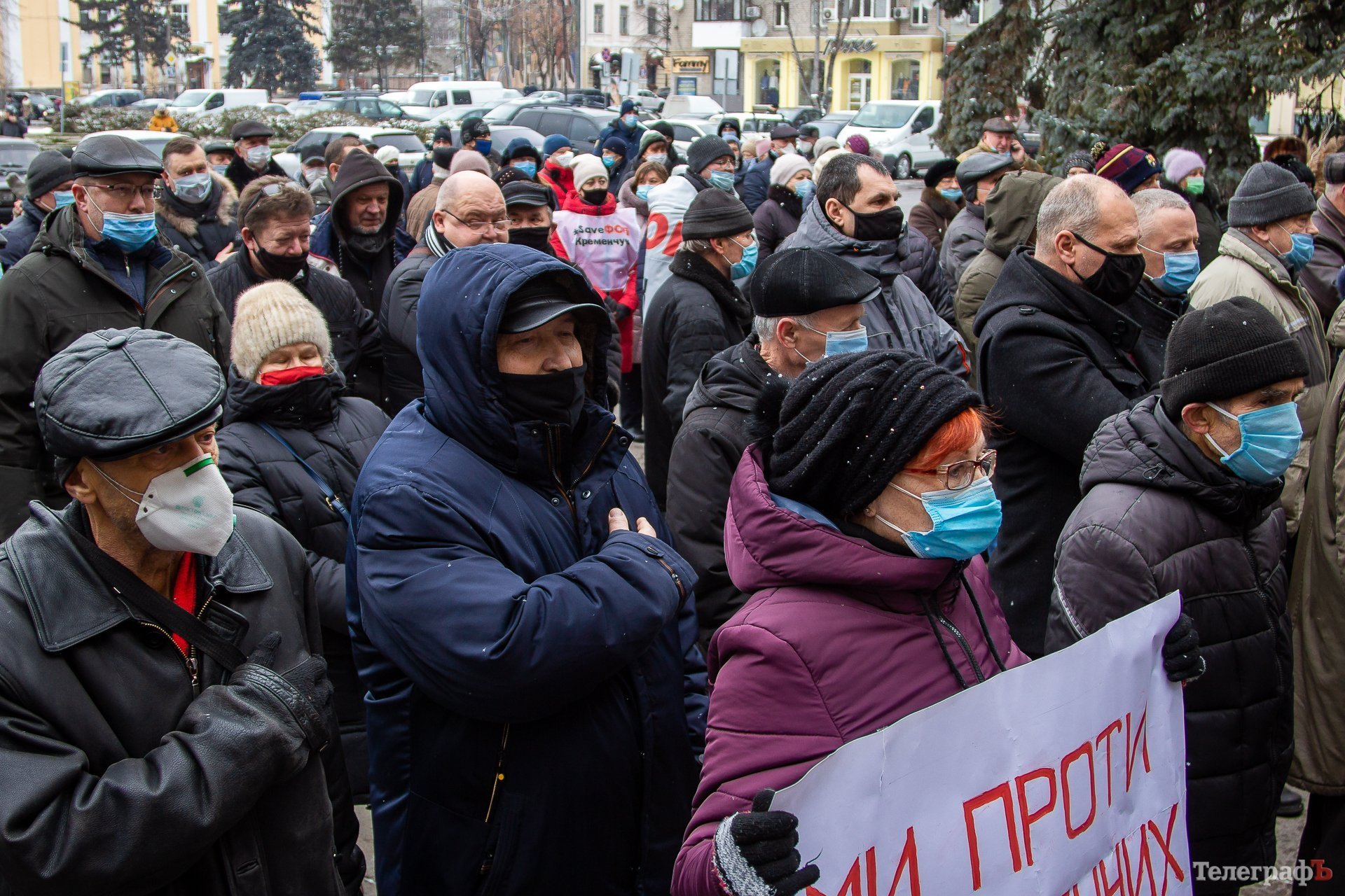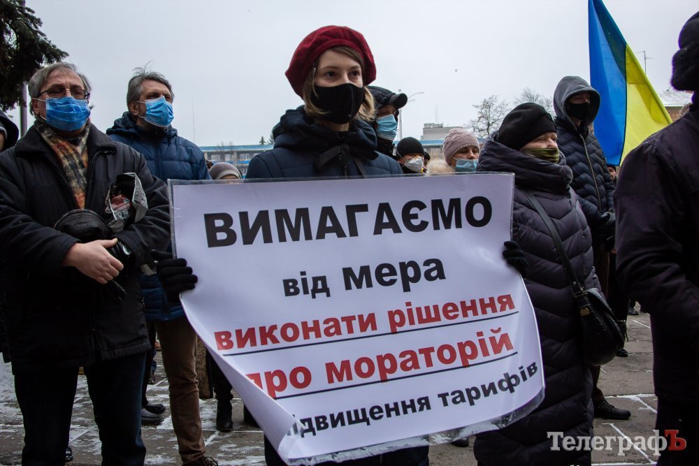 15 січня у Кременчуці на площі Перемоги відбувається мітинг проти високих тарифів на комуналку. Під мерією зібралося близько 200 людей.