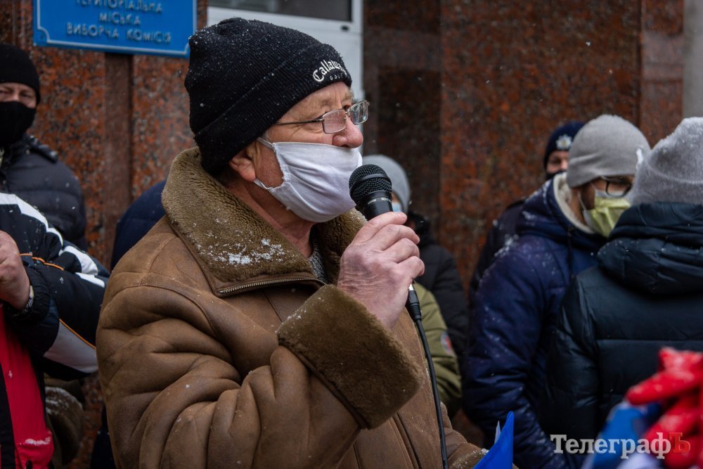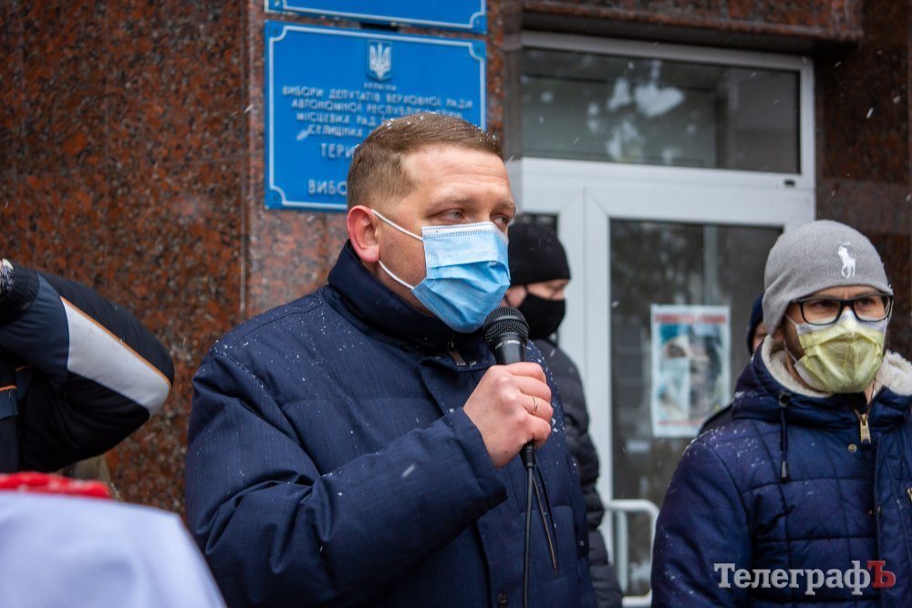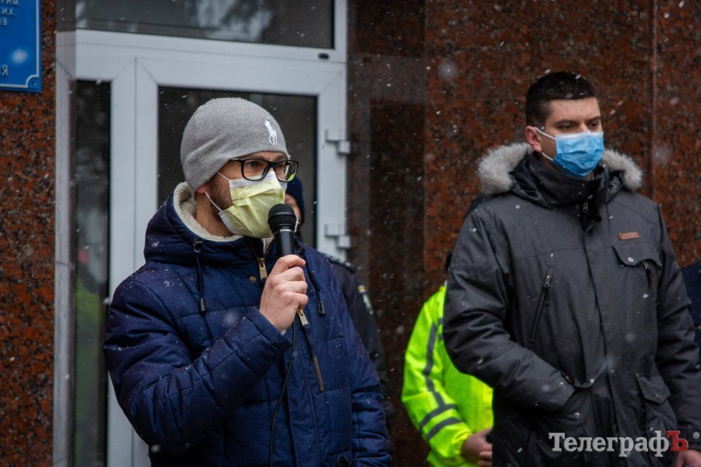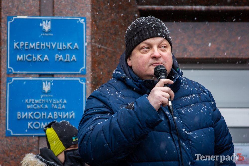 11.43 До кременчужан вийшли мер Малецький та віцемер Проценко. Малецький взяв читати вимоги мітингувальників.