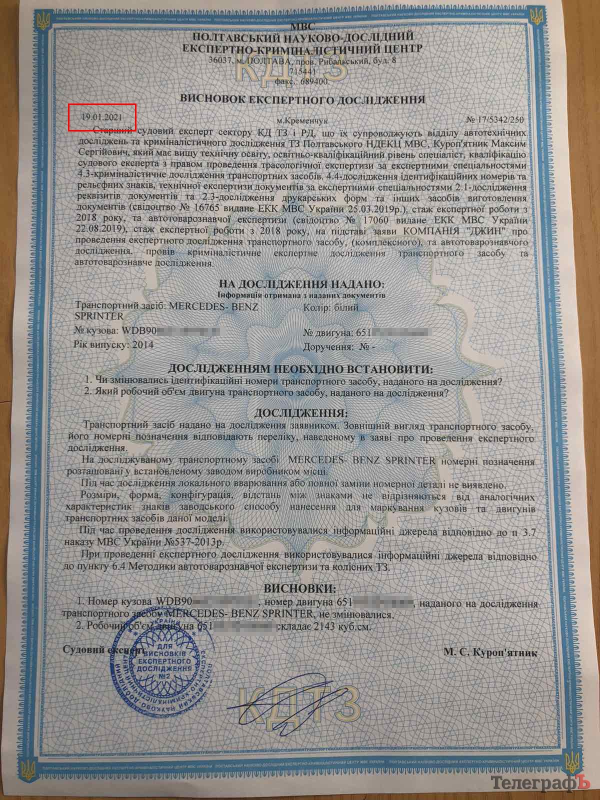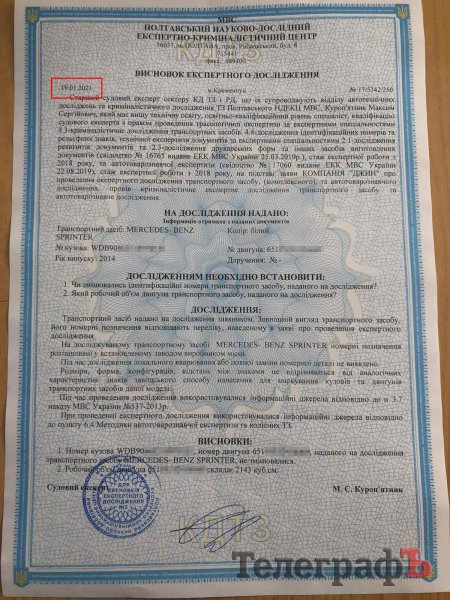 Документ, подтверждающий информацию о том, что вчера машина действительно была на экспертизе