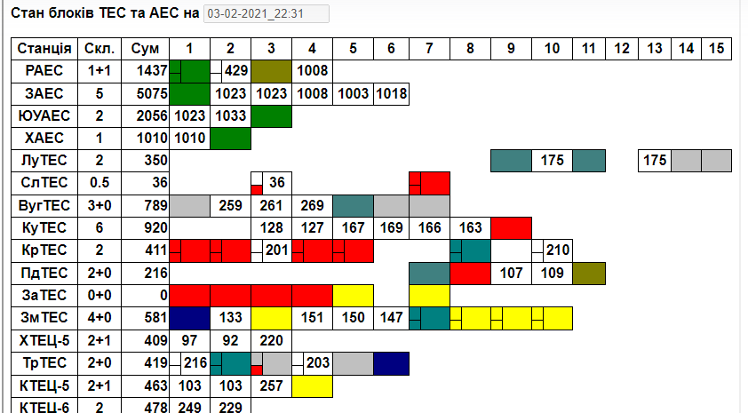 На сайті «Укренерго» стан блоків ТЕС та АЕС показується в реальному часі, зазначають у ТСН та наводять схему. У таблиці аварійний стан Запорізької ТЕС та КрТЕС позначений червоним кольором, з чого ТСН зробило висновок, що пікове навантаження пішло на Кременчук. Але КрТЕС – це позначка Криворізької ТЕС, пояснив Андрій Щербань. У Кременчуці – ТЕЦ (теплоелектроцентраль), а не ТЕС (теплова електростанція).