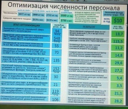Cторінка плану оптимізації чисельності, яка наробила багато галасу в мережі. Передбачається, що на заводі залишиться 1550 осіб – із нинішніх 2500. Середня зарплата при цьому має зрости до $735 на місяць