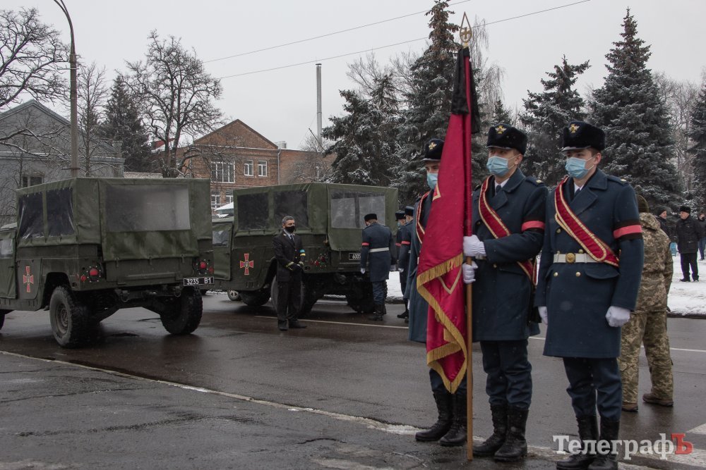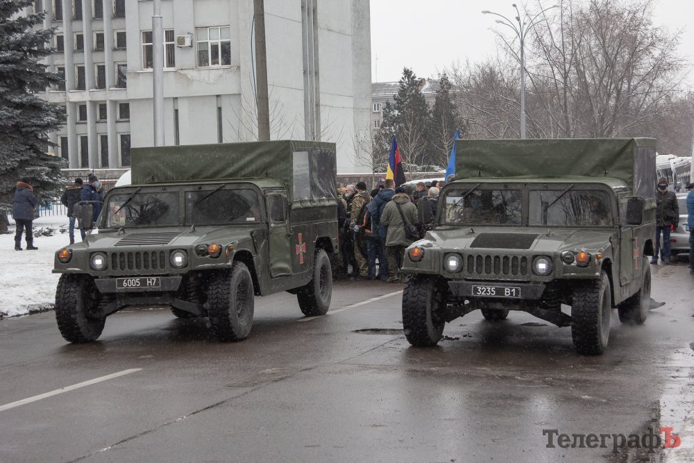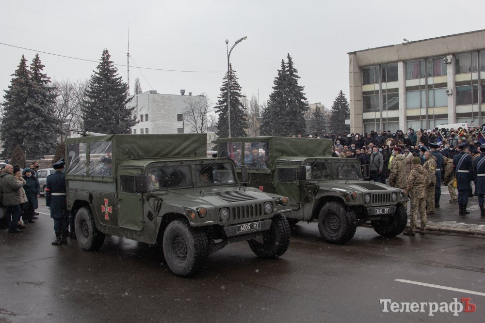 Колона з понад 50 автомобілів вишикувалася в взяла курс на Кременчук. Шурхіт прапорів та звук сирен авто розривав тишу кременчуцьких вулиць. Автомобілі у супроводі патрульної поліції з проспекту Полтавського повернули в бік Молодіжного, де на зупинці Якова Петруся повернули до проспекту Свободи. Спустившись до залізничного вокзалу колона вирушила вулицею Першотравневою, повернула до площі Перемоги, потім на Соборну, а звідти на Лікаря Богаєвського, супроводжуючи військових до моргу Першої лікарні.