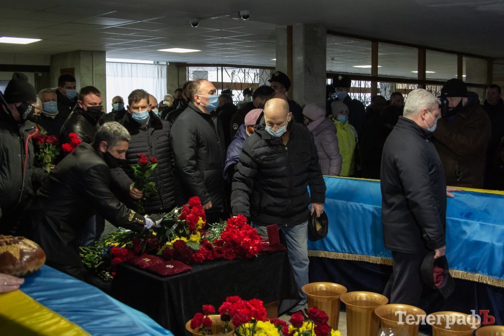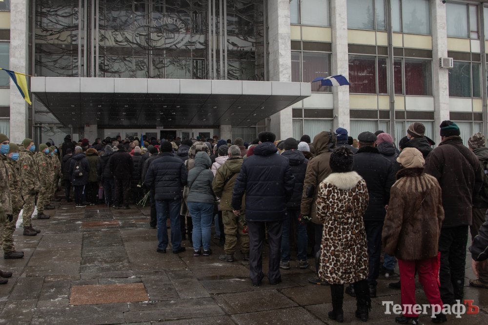 Кілька сотень кременчужан та побратимів вишукувалися в чергу, щоб віддати шану бійцям. Охочих було так багато, що черга тягнулася до сходів, а сам час прощання довелося збільшити.