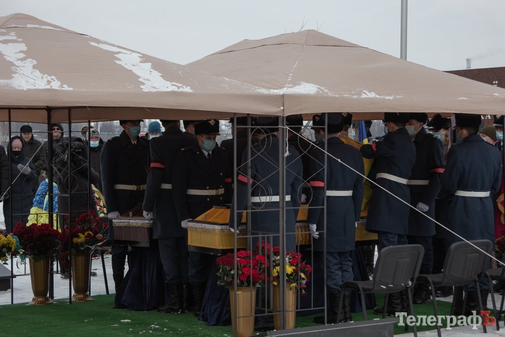 Церемонія прощання відбулася у Міському палаці культури. До палацу бійців привезли на двох хамерах. Домовини із загиблими військовими, огорнуті прапором України, по черзі проносили коридором з кременчуцьких ракетників.