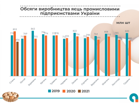 В УКАБ (асоціації «Український клуб аграрного бізнесу») пояснюють подорожчання яєць скороченням їх виробництва на 23% у січні 2021 року порівняно з січнем 2020 року.