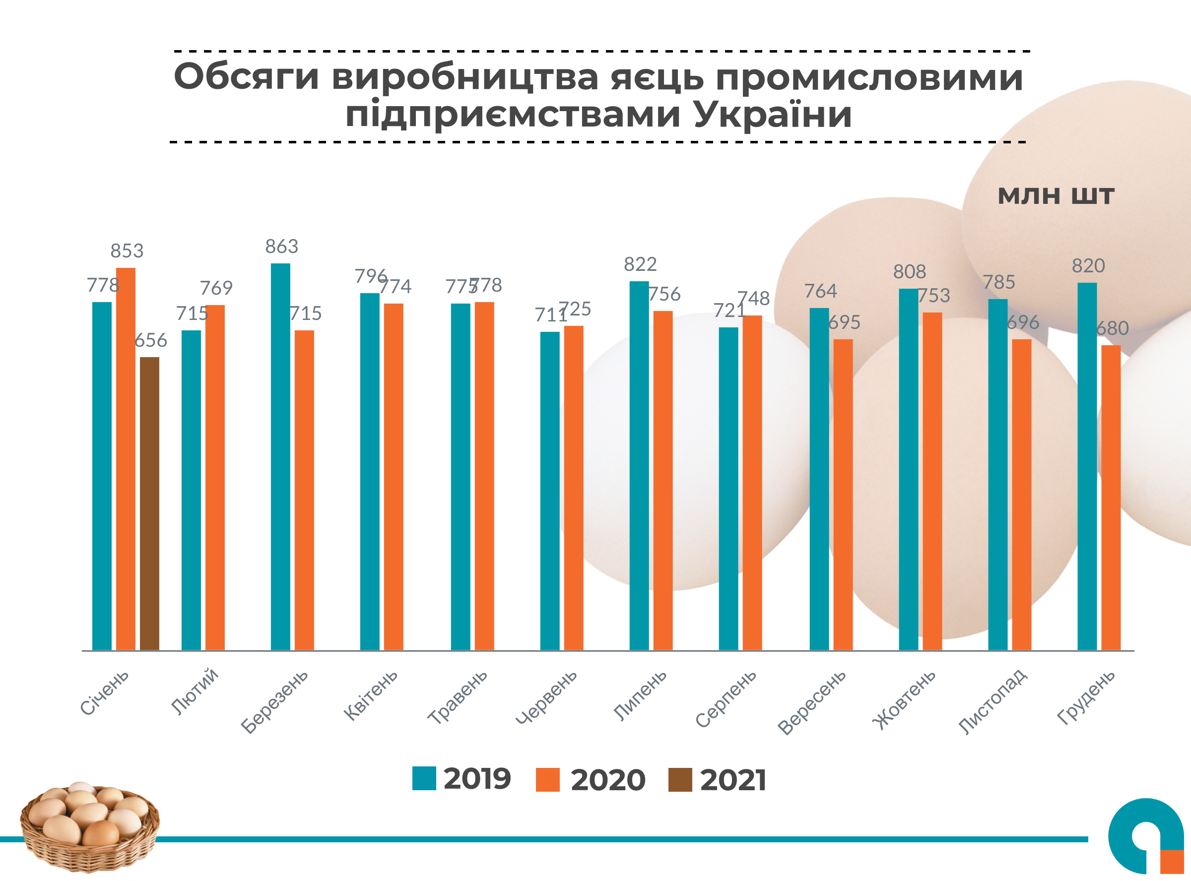 «Передумовами для такого падіння послугувало сукупність факторів, серед яких варто виділити збільшення собівартості через значне зростання ціни на зернові культури та зменшення експортних відвантажень яєць українськими виробниками», – йдеться у повідомлення УКАБ.