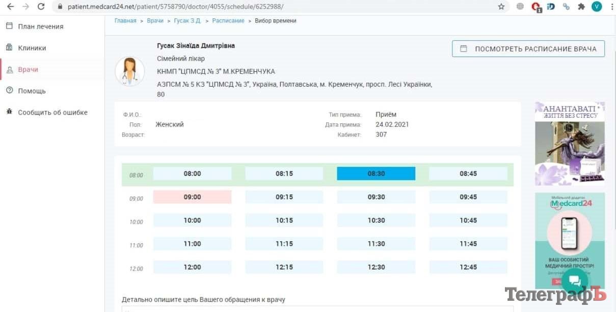 Техпрогресс дошёл до того, что теперь можно избежать «сопливых» очередей на приёме к семейному врачу. Достаточно записаться на прием через систему Medcard24. И прийти к медику в свое время, избежав долгого ожидания в больничных коридорах. Кременчужанка Екатерина говорит, что попробовала, как это работает, на прошлой неделе. Осталась довольна тем, что не пришлось долго собирать вирусы под дверью врача.