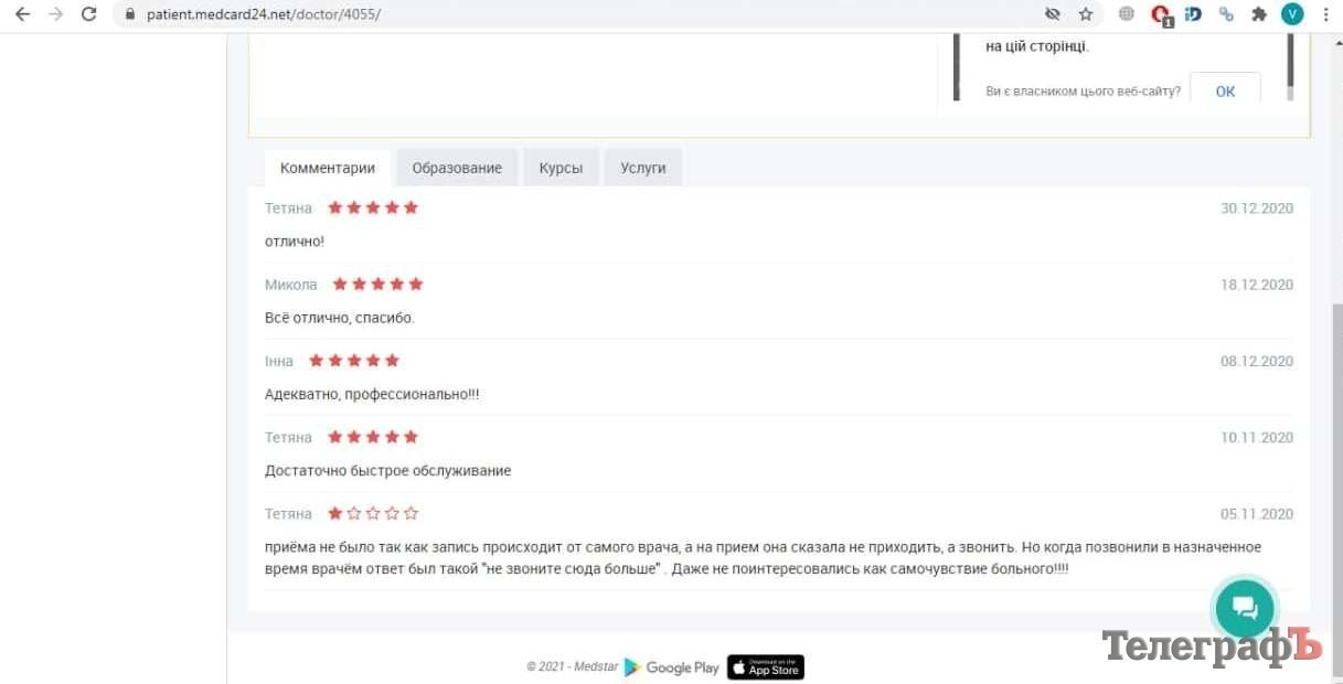 - Действует рейтинговая система: пациенты выставляют оценки медикам после посещения. Редко, но встречаются комментарии пациентов, оставленные после посещения врача.