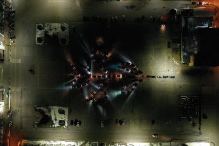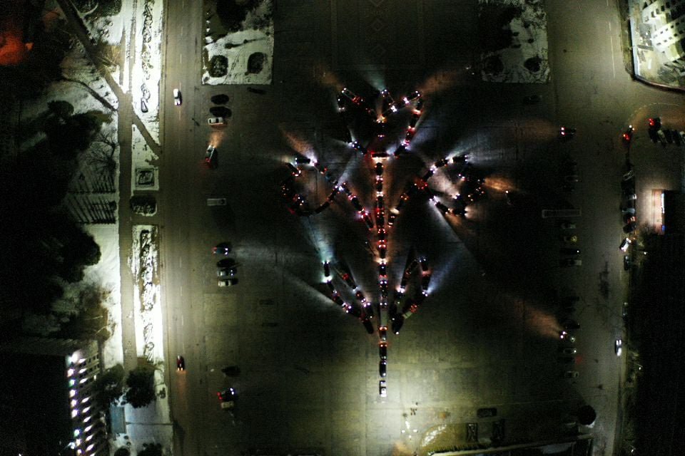 Близько 80 автомобілів з увімкненими фарами вишикувалися в квітку.