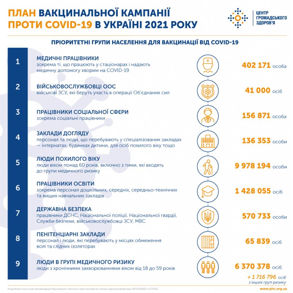 Також стало відомо, що на другому етапі поки що не щепитимуть людей віком 80+, як планувалося раніше. Адже вакцину не рекомендується вводити людям старшим за 65 років, бо немає достатніх даних про її ефективність та безпечність для цієї вікової групи.
