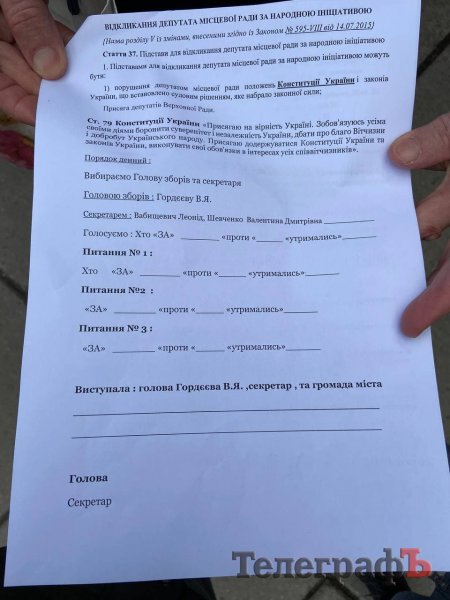 У разі, якщо сесія не ухвалить рішення про створення КП з розподілу газу, Гордєєва нагадує тим, хто проголосує проти, про можливість їх відкликання за ініціативою громади.