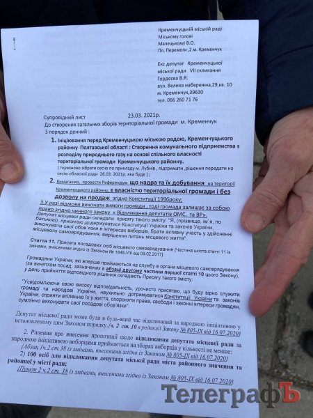 Також у листі йдеться про референдум з питання того, що надра на території Кременчуцького району є власністю громади. (Варто зазначити, що в Україні немає закону про місцевий референдум — тож виконати цю вимогу фактично неможливо.)