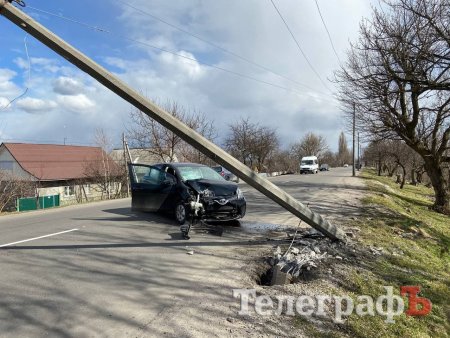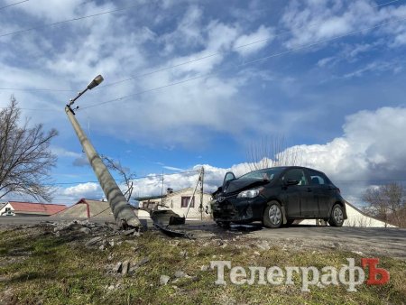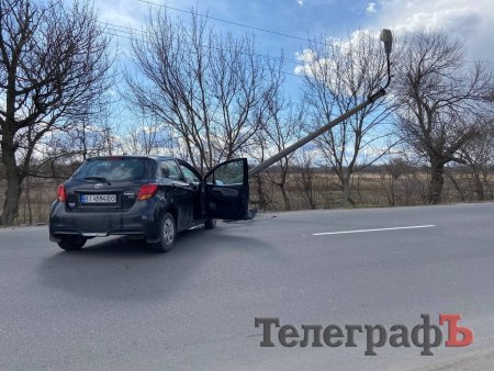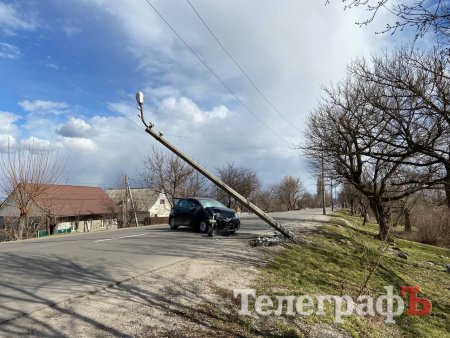 ДТП сталася поблизу межі Ревівки та Кривушів. Машина заняла усю смугу руху в напрямку міста. Стовп звисає над дорогою. Рух не ускладнений.