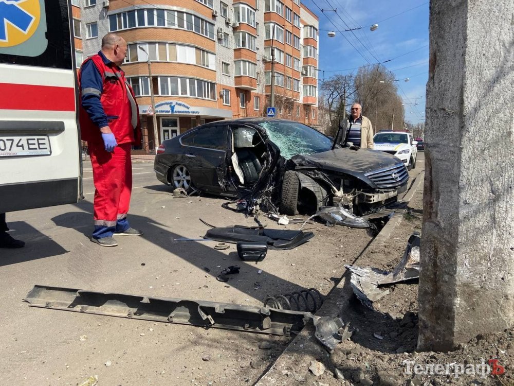 Nissan Teana їхав зі сторони річвокзалу і на великій швидкості влетів у стовп. Травмувались і водій, і пасажир.