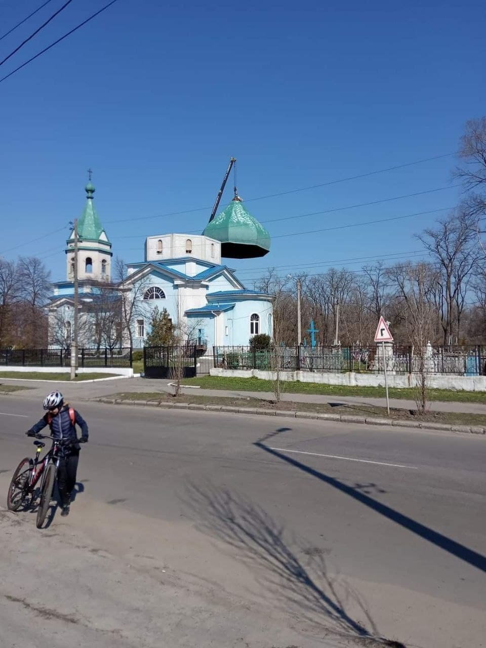 Так знімали купол минулих вихідних (9/10 квітня), фотографією поділилася кременчужанка в соцмережах