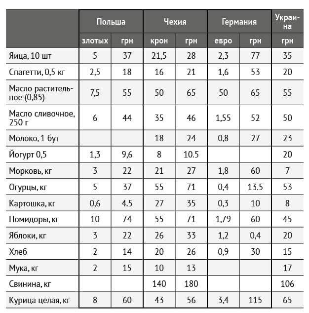 Мы попросили друзей-приятелей из Польши, Германии и Чехии - стран, где "осело" больше всего наших, поделиться ценниками с супермаркетов. Некоторые цены взяли сами из каталогов европейских супермаркетов, которые размещены на официальных сайтах. В основном мониторили дискаунтеры, которые сопоставимы с нашими "Маркетами" или АТБ.