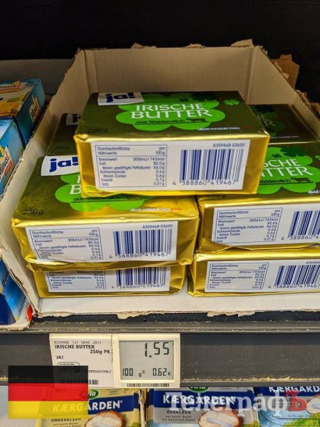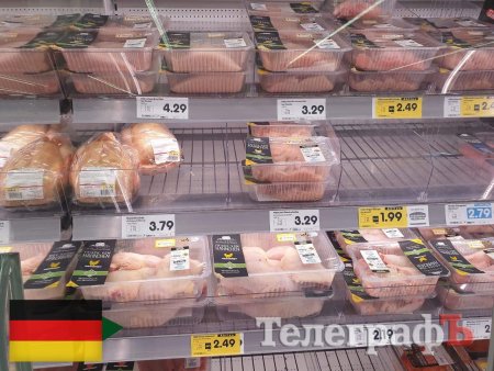 Яйца в Германии стоят пока что в 2 раза дороже, чем у нас. А вот растительное масло обходится всего на 10 грн дороже. Сливочное масло, молочка приблизительно в тех же пределах. Цены на овощи/фрукты, наоборот, даже дешевле или близки к нашим. Куриная четверть обходится немцам по акции в 87 гривень в супермаркете-дискаунтере. Говядина будет стоить дороже нашей.