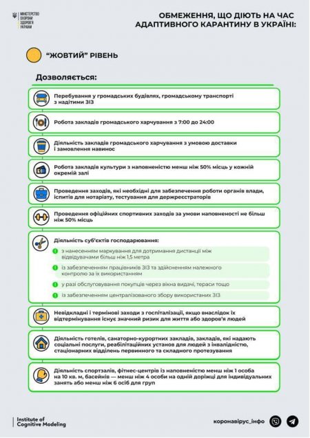 Полтавщина знаходитиметься у жовтій зоні до наступного перегляду рівня епідемічної небезпеки, який здійснює державна комісія ТЕБ і НС.