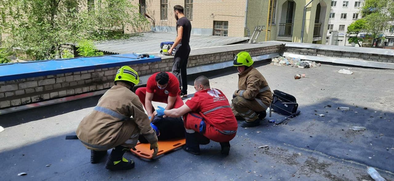 Як повідомили у пресслужбі ДСНС, працівники ДСНС за допомогою трьохколінчатої драбини піднялися на дах прибудови, за допомогою медичних нош через вікно другого поверху на сходовій клітині знесли чоловіка до карети швидкої допомоги.