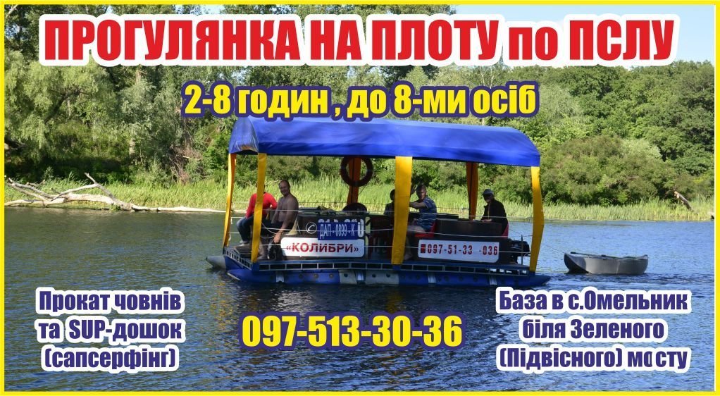 Якщо вам хочеться нових розваг, оберіть собі компанію до 8-ми друзів і відправтляйтеся в захопюючу мандрівку на плоту по нашій живописній річці Псел.