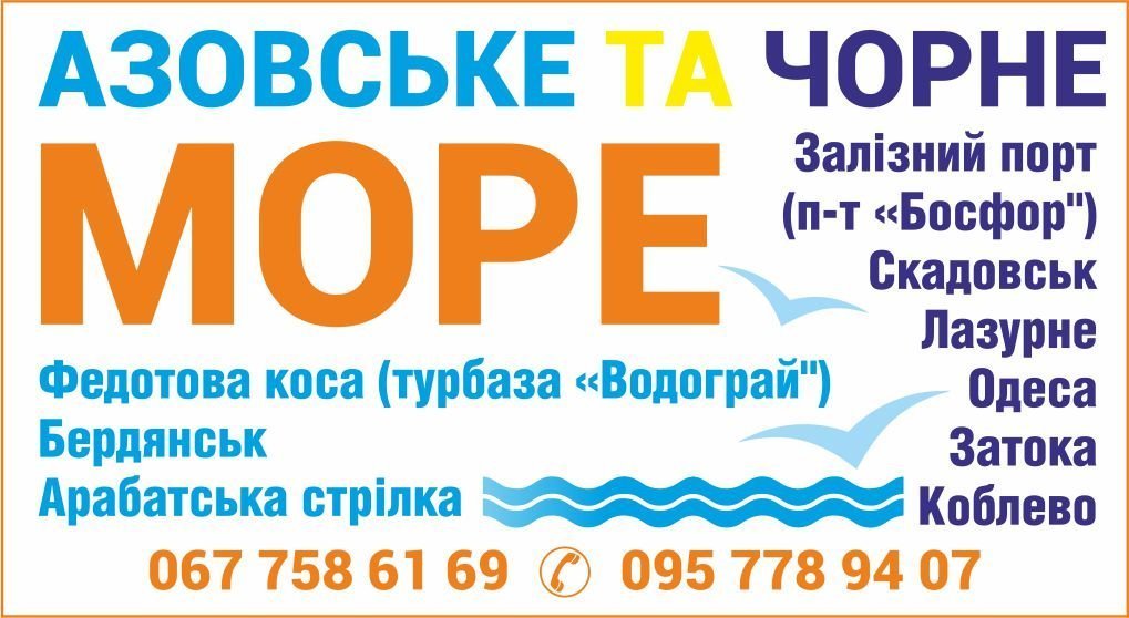 | Азовське море: Кирилівка, Федотова коса | 5-7-10-14 днів | Автобус комфорт |