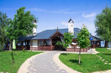 Житло: Котедж (на 6 осіб) – 2000 грн у будні і 2500 грн – у вихідний. На кожному поверсі душова, туалет, кондиціонер, холодильник. Є кухня, супутникове телебачення, Wi-Fi. Альтанка і у кожного будиночка є свій човен навеслах (входить у вартість оренди).