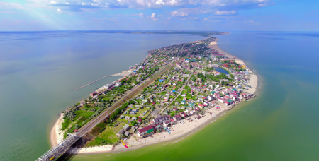 Длиннющая коса, разделитель между Азовским морем и озером Сиваш. Есть источник горячей воды под Счастливцево, соленое, розовое озеро. Пляжи – просторные, много мелких. Водные развлечения. Доехать на Арабатскую стрелку – 350 грн в один конец.