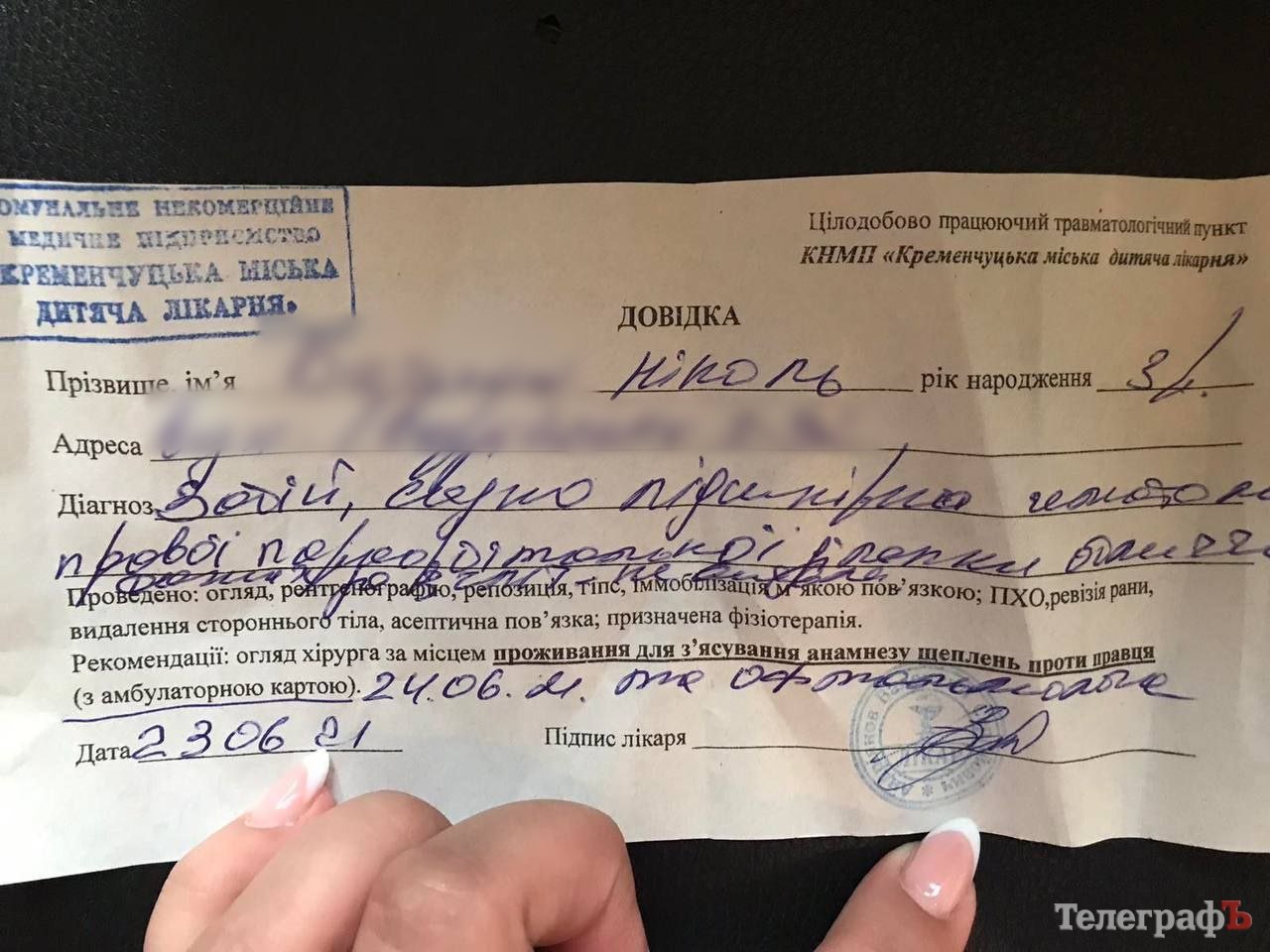 Вчора, 23 червня, в дитячому садочку №80 на Молодіжному стався нещасний випадок, в результаті якого постраждала маленька Ніколь. У 3-річої дівчинки садна на правій вилиці та гематома на пів-обличчя. В редакцію «ТелеграфЪ» звернувся батько дитини і розповів, як все сталося.