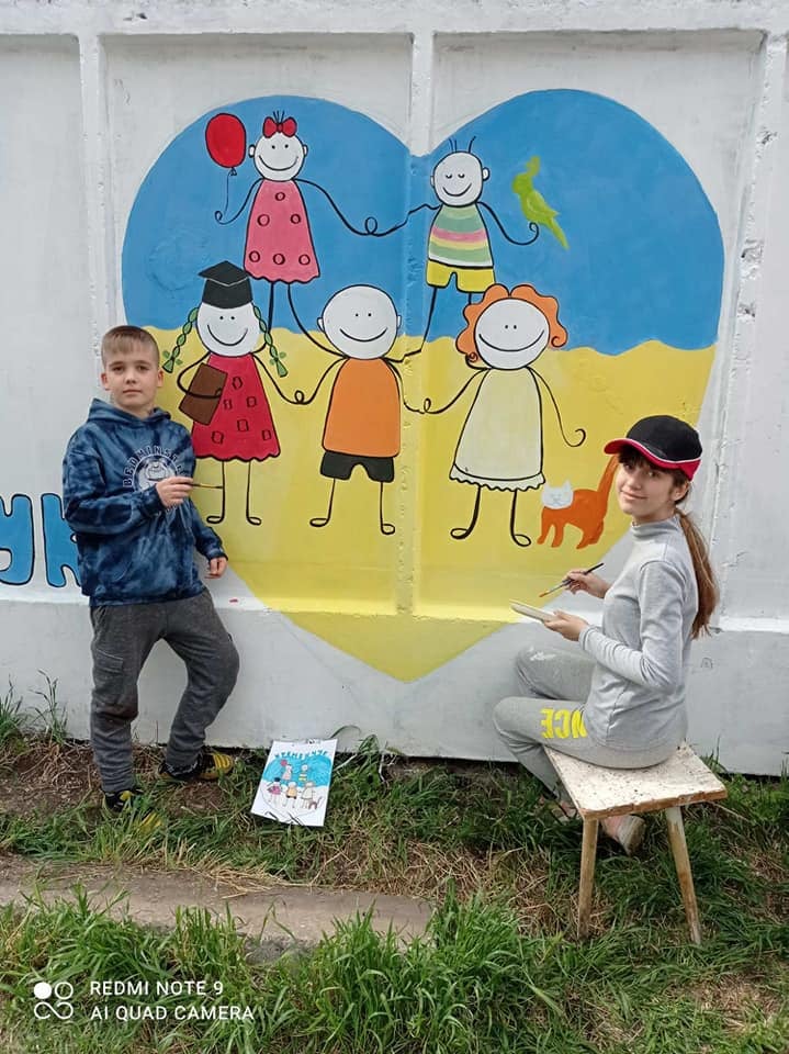 – Ми з братом разом сиділи і думали, як зробити гарний ескіз, щоб його можна було швидко намалювати, бо погода не давала нам дуже багато часу. Ми зробили ескіз, його розмалювали та чекали моменту, щоб прийти сюди. Нам сказали, що можуть бути гроза та злива, тому ми хотіли зробити це скоріш, щоб нічого поганого не сталося з роботою. Ми малювали з великим задоволенням, бо ще ніколи не малювали на парканах, це було вперше. Спочатку ми зробили ескіз крейдою, після цього розмалювали задній план – серце, а потім вже перейшли до самих людей, домашніх тваринок і напису «Кременчук». Це був дуже цікавий досвід у моєму житті.