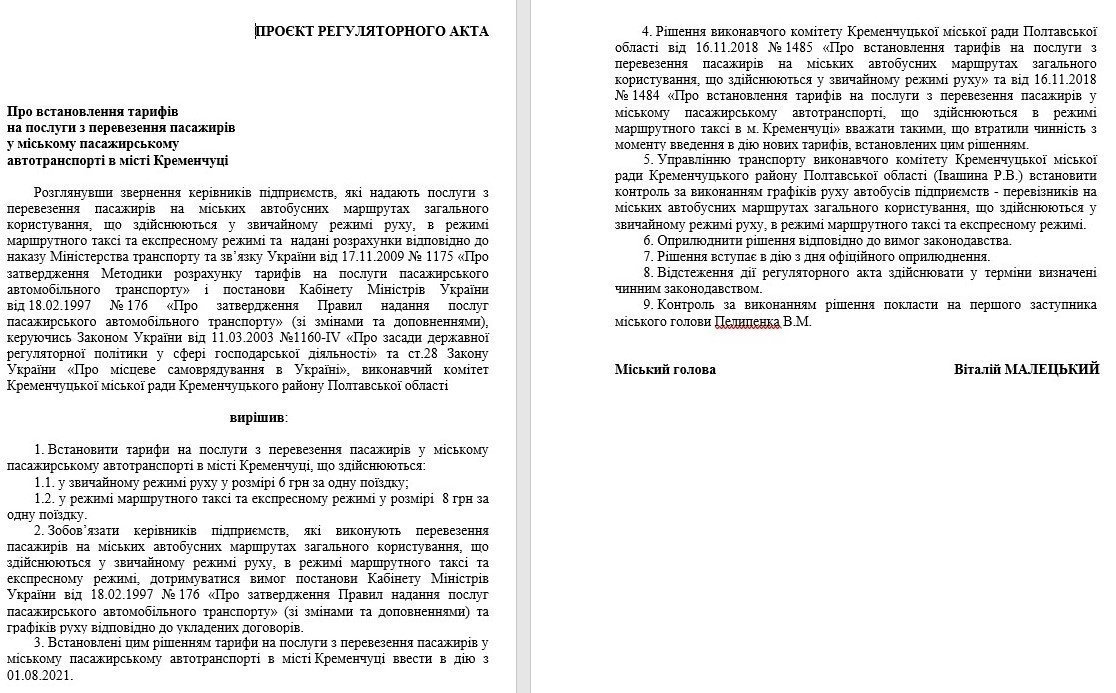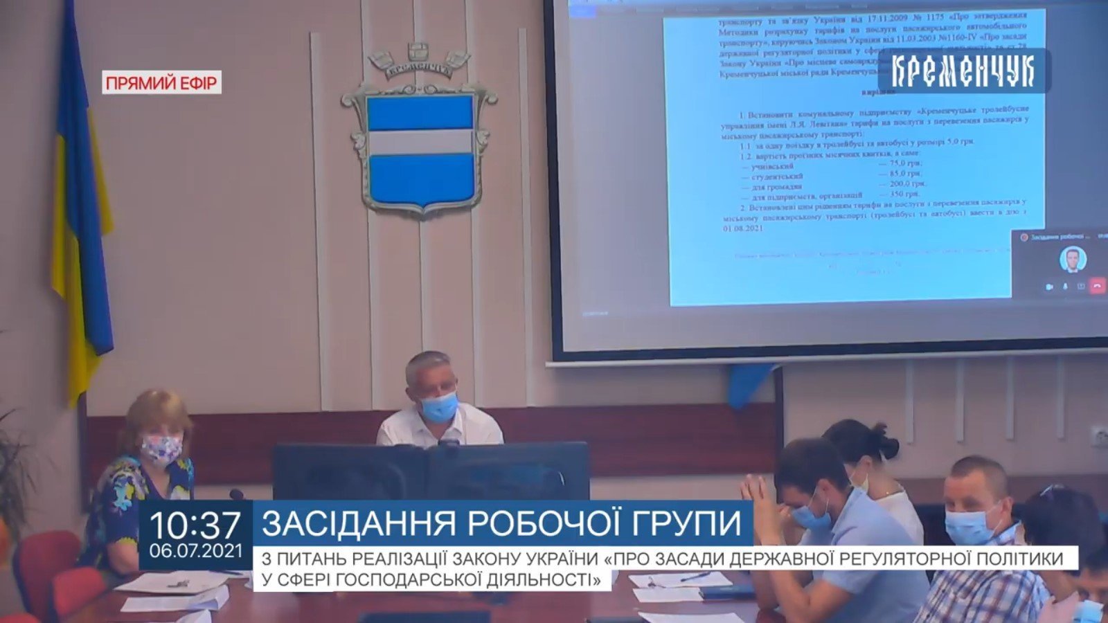 6 липня в приміщенні виконкому Кременчука відбулося засідання робочої групи з питань регуляторної політики у господарській діяльності. Під час засідання депутати та представники перевізників обговорили питання про встановлення тарифів на перевезення пасажирів.
